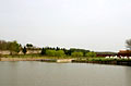 显陵的九曲河为陵内人工挖掘的御河,砖石结构,全长1596米、宽4米、深2-3米。河水由城东北引上游山泉水入陵,环绕神道两旁,来去迂回,形成九道弯曲,因此得名。河上建有五处石拱桥,每处三座,由北向南耸立在中轴线上。九曲河的设计和营建不仅满足了封建帝王陵寝对风水的要求,而且还具有很高的审美价值。正是因为九曲河的作用,使得陵内的建筑群连成一个整体,显得错落有致,同时也使陵园显得富有生气,景色更加秀美。
