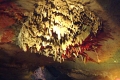 宽敞高大的洞穴内,千姿百态的钟乳石、石笋、石柱,内景观配以五色灯光,晶莹剔透、绚丽多彩,曲折迂回的通道在灯光的照射下宛若地下龙宫。洞底地质奇特,有石花、云盆、鹅管、地质遗迹等景观,以雄险奇幽为特点。